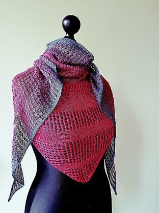 Shawl requires a yardage of approx. 437 yds / 400 m (656 yds / 600 m) of Fingering (Light Fingering or Lace) weight yarn