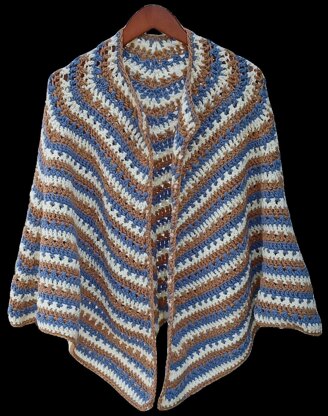 The shape ensures that the shawl stays put on the shoulders where it belongs, no pins, or buttons, or ties needed!
