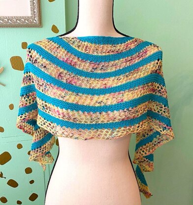 Highly flexible in three ways: You can choose Garter or Stockinette for the body sections that are alternated with lace sections (see stitch guide); you may wish to use DK weight yarn and go up 2 needle sizes, and, you may wish to add a third skein and continue alternating as many repeats as your yardage allows for.