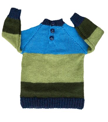 Materials: 50g each of Stylecraft Life double knitting in navy, olive, green & blue and contrast colours for the motif; 3 small buttons