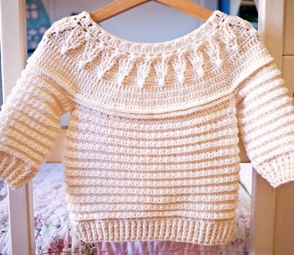 Stella Sweater is 100% seamless. It’s worked top down with a very elastic foundation chain and a beautifully textured yoke. The body part is very soft and will be very comfortable to wear.