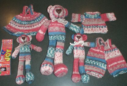I made a large bear, a small bear, and three pieces of clothing from one 100g ball of sock yarn.