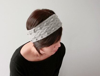 Pretty combo of classic cables and bobbles makes the ear warmer chic and feminine to wear. The bobbles are easy to make and require no turning or backward knitting. A great project to practice cables and bobbles for the adventurous beginners and an enjoyable quick knit for the more advanced.