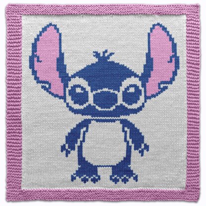 Knit a piece of Stitch’s mischievous world with this adorable Stitch Square Knitting Pattern! Inspired by Disney’s cheeky alien, this fun block brings Stitch’s big-eyed cuteness to your cozy knitting projects. Worked flat with a neat garter border and smooth stockinette center, it’s perfect for storybook baby blankets, fun tote bags, cute pillows, nursery décor, or adding magic to an oversized sweater. Includes a clear colorwork chart and easy row-by-row instructions. Knit the motif with intarsia or add later with duplicate stitch. Chart also works for machine knitting!
