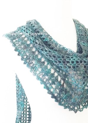If you like my one-skein scarves that are crocheted sideways from tip to tip, you will also like Stitch Oasis. This scarf has a little trick to add depth to the center point, but without consuming a lot more yarn. And, I included a border on both edges that is formed as you crochet through the rows, plus an additional lacy edging added to the bottom edge.