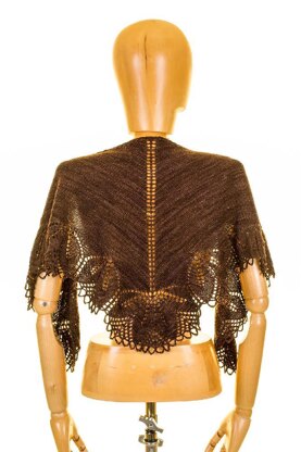 This top down shawl increases 6 stitches every other row, creating a wide, shallow triangle, using just a single skein of most sock yarns. Because this is worked top down it is easy to adjust the overall size by working more rows of stockinette. If you choose to use beads you will need approximately 350 size 6/0 seed beads. Pattern has been test knit, and includes charts, line by line directions, and stitch count totals for every row. 425 yards of fingering yarn.
