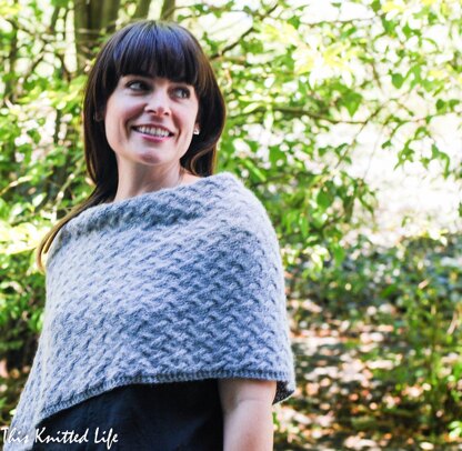 This pattern has been independently reviewed be a qualified technical editor and test knit by a cadre of enthusiastic knitters. The Stoneland pattern includes written instructions and a clear, professional design layout. The pattern also includes a diagram to clearly show how the poncho should be folded, seamed, and finished. Measurements are provided in both English and metric units. The pattern includes sizing for small through extra large.