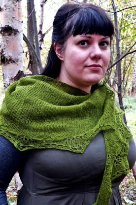 Storegga is a crescent-shaped shawl knitted on large needles to create drape and shape.