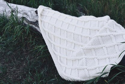 Yarn: 11 balls of Cascade Lana Grande in Ecru (6010) Needles: US 15 - 32” circular needles or size to obtain gauge. Gauge: 10 sts x 12.5 rows worked in Stockinette st. Yardage: About 950. Notions: cable needle, darning needle. Size: 50” x 54”