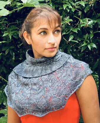 The pattern is written out and charted. The shawl is knit in three parts: The yolk, the wings and lastly the cable applique section. Alternatively, you could just knit the yolk and use it like a cape. If you knit the yolk section in white or ivory, it could be used by a bride on their special day!