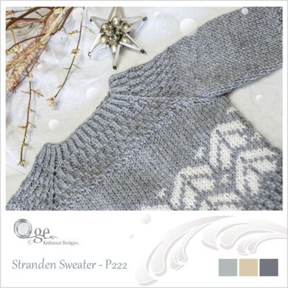 This comfy sweater is both practical and classic and would be suitable for everyday wear. The sweater is worked top down, no seaming. Worked in a twisted Rib pattern around the top, sleeve bands and band at bottom, the remainder is worked in st st with a simple fair isle pattern around the middle section.