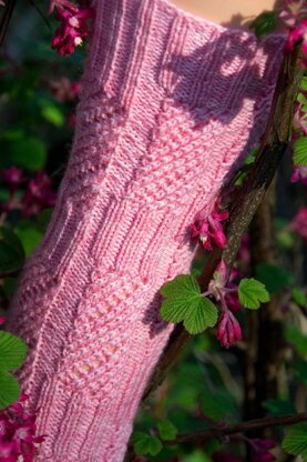 This sock is worked top-down and combines ribbing, twisted stitches and a bit of lace in an all-over leg pattern. The ribbing used in the pattern is slightly different with each size, making them each a bit individual in appearance. It also compensates very nicely for the tightening effect twisted stitches usually have on a knitted fabric, so overall, the sock remains quite stretchy. A classic approach is taken to the heel flap, short-row heel and gusset decreases and the continuation of the pattern down the foot make this a quick knit using a single pattern chart per size. The toes are worked in the same ribbing as the cuff.