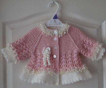 This is a very pretty garment for a little girl. Knitted in DK yarn, the cardigan is knitted top down and combines garter stitch with a very easy lace pattern.