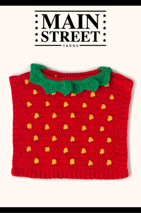 Super sweet! Hook up a Strawberry Poncho for the cute little berries in your life, working with a 5mm hook and Main Street Yarns Shiny + Soft yarn in Bright Red, Buttercup Yellow and Grass Green for a sweet little strawberry leaf collar. Adorable over any little outfit - this will be the poncho they won't take off!