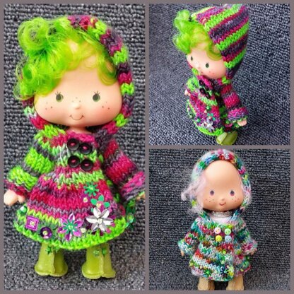 This is a lovely PDF knitting pattern for a hooded coat to fit your vintage Strawberry Shortcake doll. Using 2.75mm needles and sock yarn. Keep her warm and snuggly this winter!