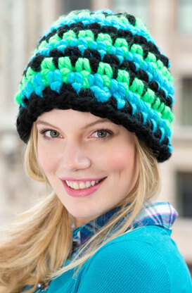 Stripe It Beanie in Red Heart Vivid Solids - LW3625 - Downloadable PDF