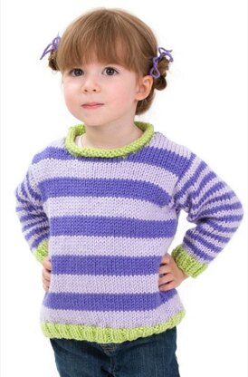 Stripe it Easy Pullover in Red Heart Soft Baby Steps Solids - LW3236