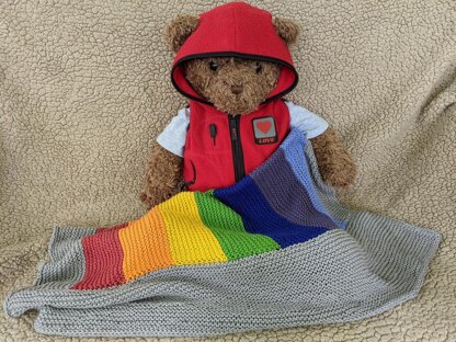 A perfect knitted baby gift for all to adore at everyone’s baby shower. Work flat in garter stitch with stripes on one side, then, continue by picking up stitches along the side and change the direction of the work. Finish blanket with I-cord all around. Play with rainbow colors or use one color as contrast. The pattern is reversible.