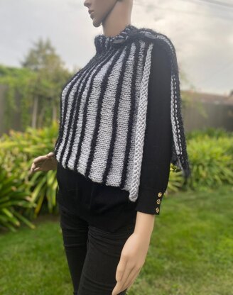 I knit all my patterns. The capelet is knit in garter and stockinette stitch . It is an easy to follow pattern for intermediate knitters, designed for a maximum of glamor with a minimum of complications, especially for anyone who wants a quick and fancy project.
