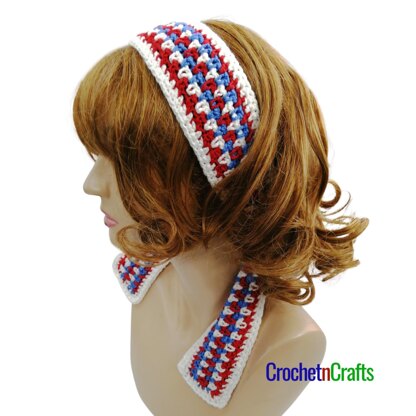 Measurements: Gauge: 16 sts/chs = 4". Finished Size: 41" by 2.5". (Headband will stretch as you wear it. It is shown with one knot tied at the back.)