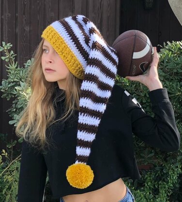 Deluxe Football Elf Hat is a fun what to represent your team and to keep nice and cozy while throwing the football around or attending the perfect football game. Make it in any color combination to match your team.