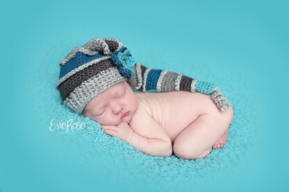 This striped elf pattern makes a great winter hat or photo prop. Also a great way to use up yarn because you can use lots of different colours!