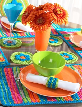 Striped Placemats and Coasters Table Setting in Bernat Handicrafter Cotton Solids