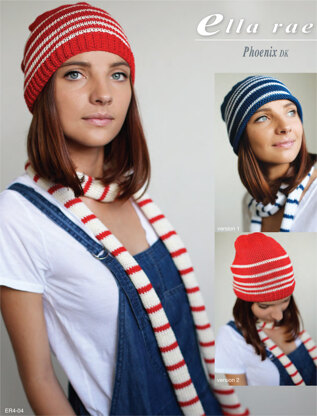 Striped Scarf and Beanie Set in Ella Rae Phoenix DK - ER4-04 - Downloadable PDF