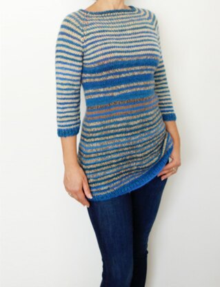 This warm and cozy sweater, for everyday wear, is perfect paired with jeans. The relaxed fit is tailored to you with this top-down, in the round pullover with stocking stitch and thick/thin stripes panels. Knit this for yourself or as a gift for someone special!