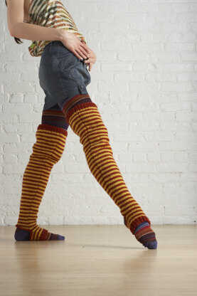 Striped Thigh Highs in Lion Brand Vanna's Choice - 70691AD