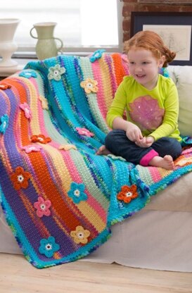Stripes & Flowers Throw in Red Heart Super Saver Economy Solids - LW4013
