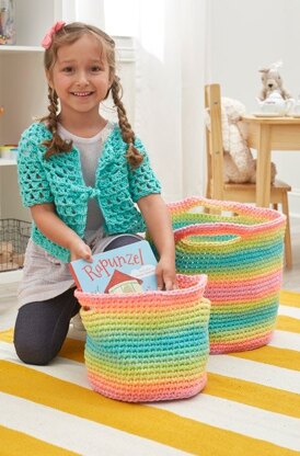 Striping Fun Crochet Baskets in Red Heart Super Saver Stripes - LW5796 - Downloadable PDF
