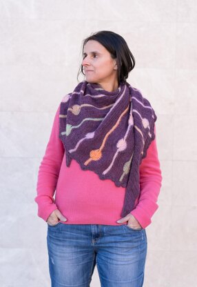 Stubborn is a fun and easy crochet shawl incorporating contrasting elements, growing in progression, creating an asymmetrical triangular shape. It's perfect for playing with color and using some leftovers.