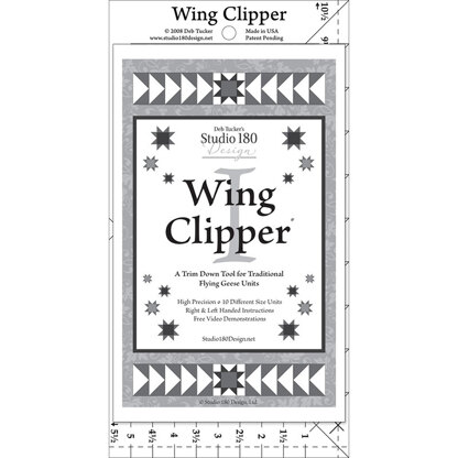 For quilting flying geese units, the Studio 180 Design Wing Clipper is an essential piece of kit. It enables you to make four pieces from five squares, with each unit a little bit oversized so that it can be trimmed to the perfect size with the wing clipper tool once you’ve completed sewing and pressing.