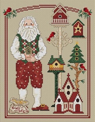 This Santa is the second in the Annual Santa series. The gold-toned birdhouse charm in Santa's hands is included. Design size is 96 x 123 and fits nicely into a standard 8" x 10" frame when worked on 14/28 count fabric..