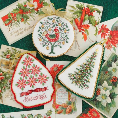 Another group of ornaments and delightful addition to our "Something Old, Something New" series. What fun you'll have decorating the Victorian Tree! We used white and burgundy beads to simulate the popcorn and cranberry garlands and finished up with tiny stars! Templates and finishing instructions are detailed and easy to follow.