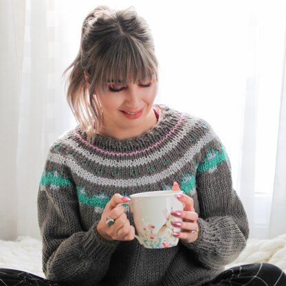 The Sugar Cookie Pullover is made with bulky weight yarn making it a quick and comfy knit!
