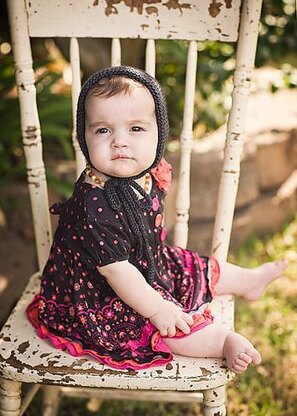 This little bonnet is so quick and easy, you'll be able to whip up some sweet gifts for the little ones in your life in next to no time. Version A is sweet and girly with an eyelot row for threading ribbon through, while Version B has icord ties and makes a great piece for boys and girls alike.