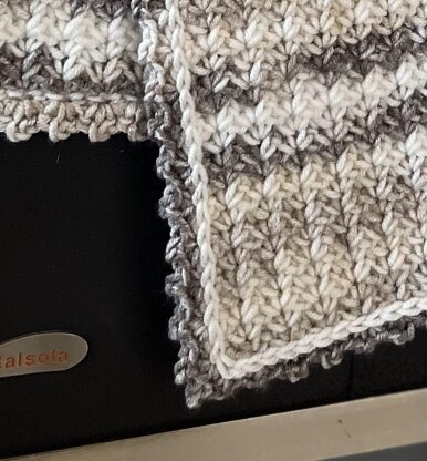 This is such an easy blanket to make, but it creates a beautiful texture that is fairly dense and is perfect for a cuddly winter blanket. The blanket is also completely reversible.