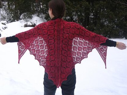 The Sumac Leaf Shawl is knit from the top down. The pattern is inspired by the deep red sumac leaves of the late fall.
