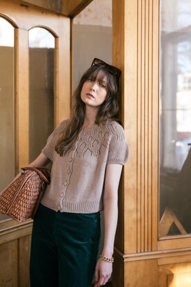 In this cardigan, there’s a bit of a challenge with some lace, but the result is wonderfully summery. After the lace pattern, short rows are worked to raise the back higher than the front. The cardigan has short sleeves. The length of the cardigan can be easily adjusted as it is knit from the top down.