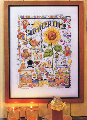 Designed by: Linda Gillum. Spring into summer fun with this sampler featuring adorable bears playing outdoors! From blowing bubbles to making sandcastles at the beach, these cuties are sure to put a smile on your face! Give as a birthday gift, 'just because' gift, or 'thinking of you' gift to anyone with a fondness for bears!