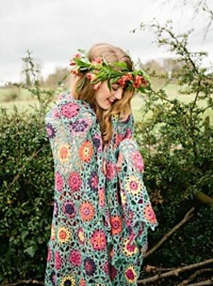 Inspired by garden flowers on a summer day, this throw will give you a year-long display of pretty flowers, inside or outdoors. Made of motifs, joined as you go. It can be made any size. I used 4ply yarn - 6 colours for the flowers (200m of each colour) and one colour (a grey/green) for the background (approx 1400m) Originally published in Inside Crochet issue 52