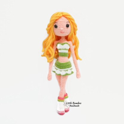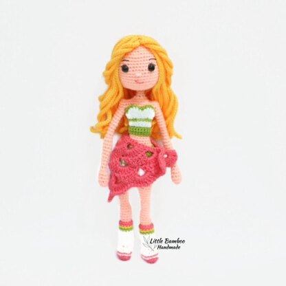 Suggested Materials & Tools: • 4 Ply Acrylic / Milk Cotton Yarn - Light peach - Green - Golden yellow - Watermelon red - White • Fiberfill or cotton • Crochet hook size 2 mm • Wire • Black safety eye 9 mm • Hook and eye ( 4 sets ) • Snap fastener ( 1 set ) Size: about 30 cm Skill level: INTERMEDIATE