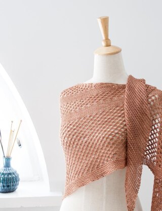 Starting with just one stitch, Summer Sky is worked diagonally from one tip to the opposite side of the triangle. Increases on one side and decreases on the other create a slightly asymmetric shape.