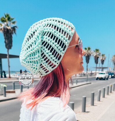 Women’s summer slouch beanie hat PDF crochet pattern for instant downloading.