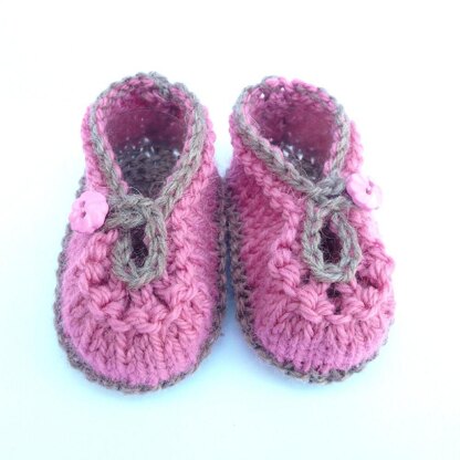 Easy to knit baby shoes for the spring and summer. Knit in more muted tones for boys too. The pattern is quick and simple, requiring no more than a basic understanding of knitting and the ability to crochet a foundation chain. The button fastening also helps to keep the shoes on those wriggly toes! All you need is 25g of DK yarn in 2 colours and 2 coordinating buttons.