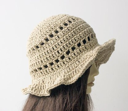 A pretty hat with a large brim to shade your eyes on a bright day in any season. Perfect for a day at the beach.