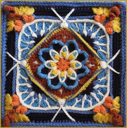 Summer Sunset is a square, made with 3D technique, that can serve as the center of a cushion, a blanket or work several in different colors and join them.