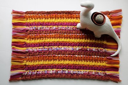 This fun place mat combines crochet, and weaving for a beautiful fabric!